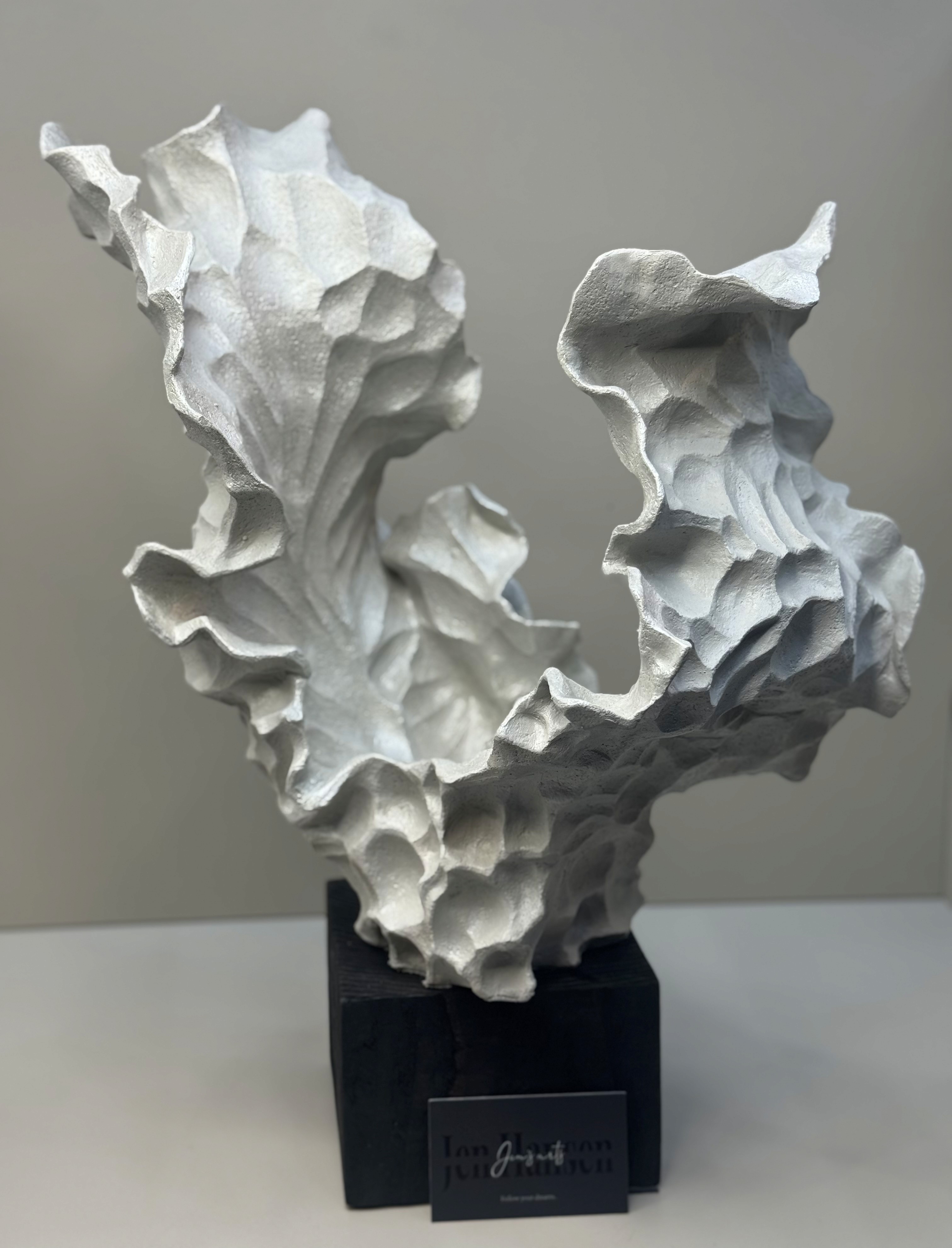 Sculpture crafted from clay, kiln-fired, glazed, and fired once more to achieve its final finish.