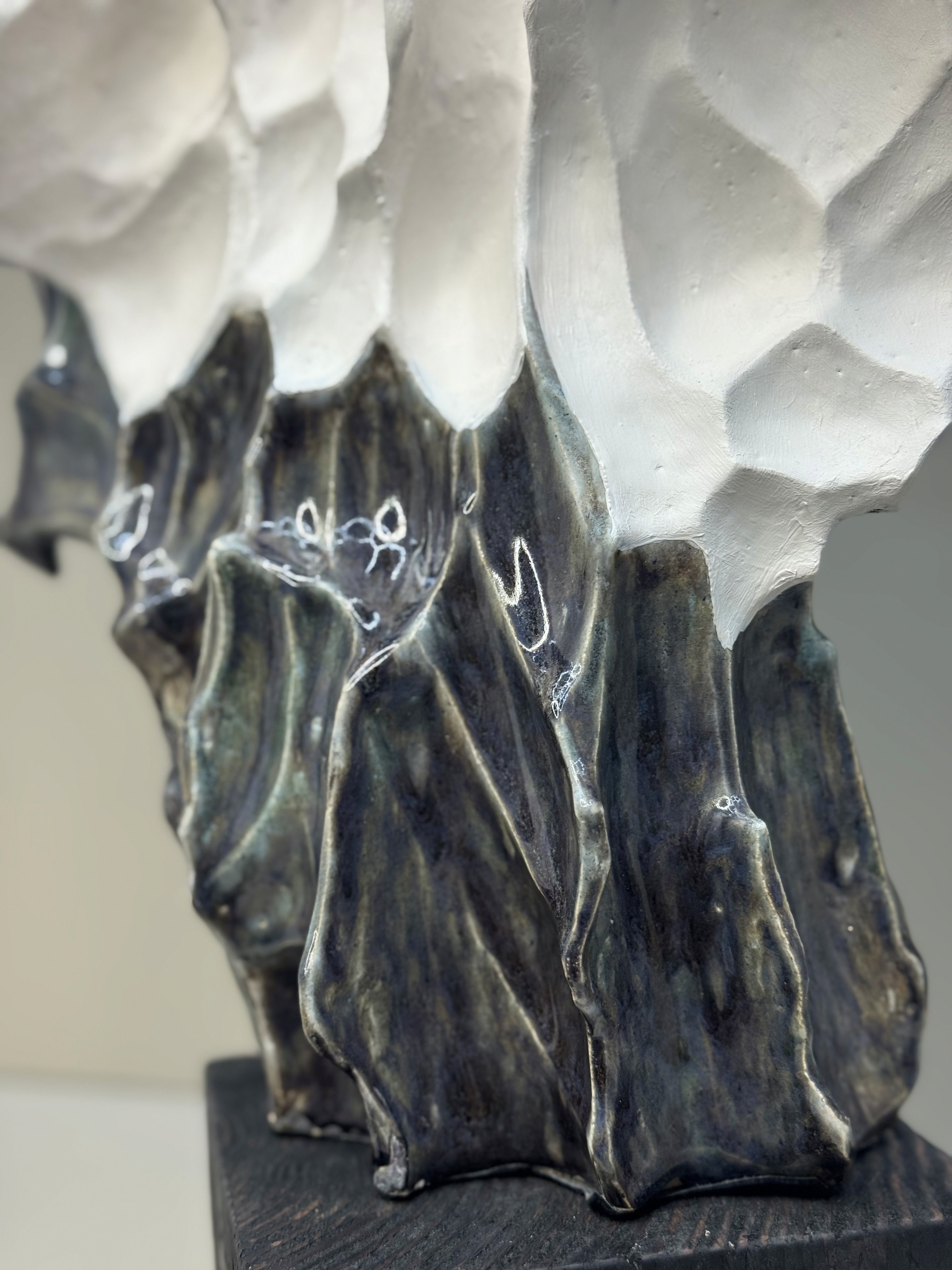 An elegant vase with soft, flowing forms, partially glazed to enhance its sculptural character